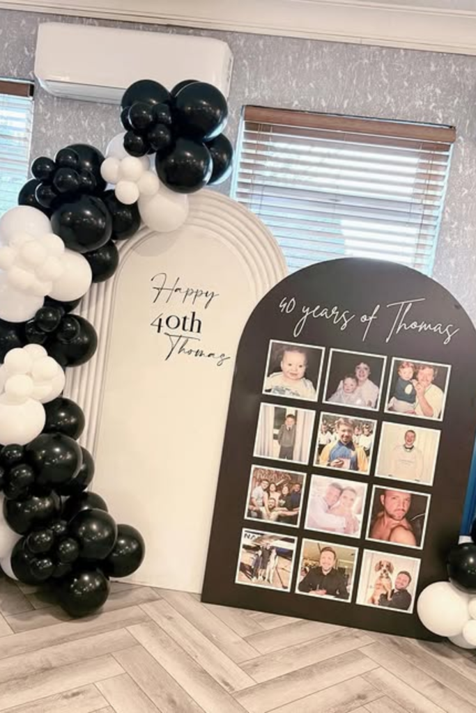 Nothing makes a 40th feel more personal than showing the journey, not just the party. Perfect for indoor setups where you have a wall or corner to tell a story.