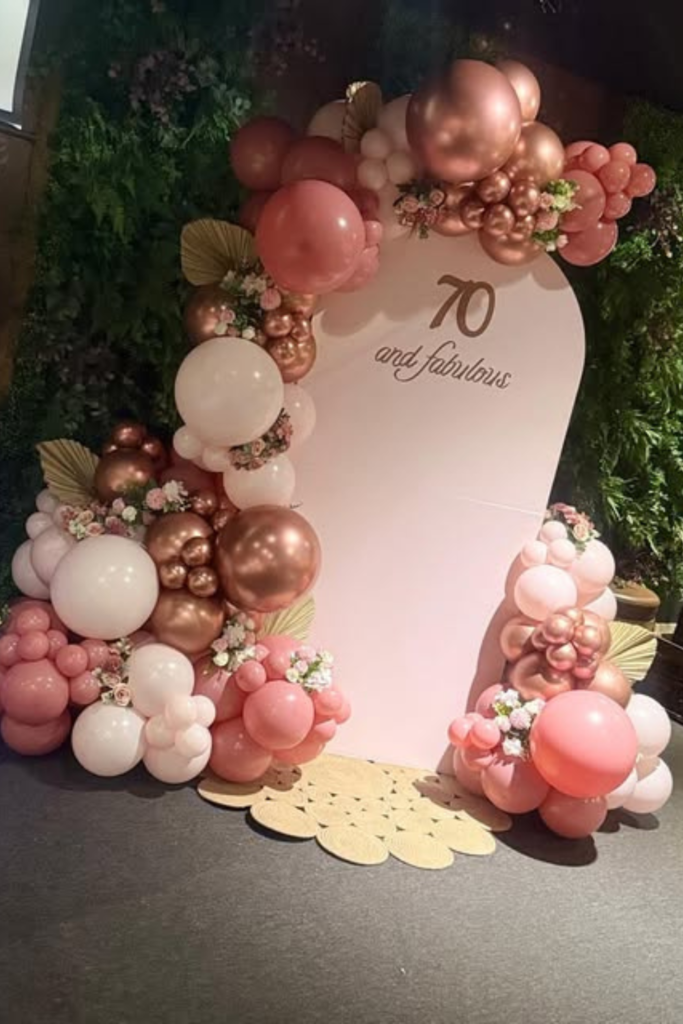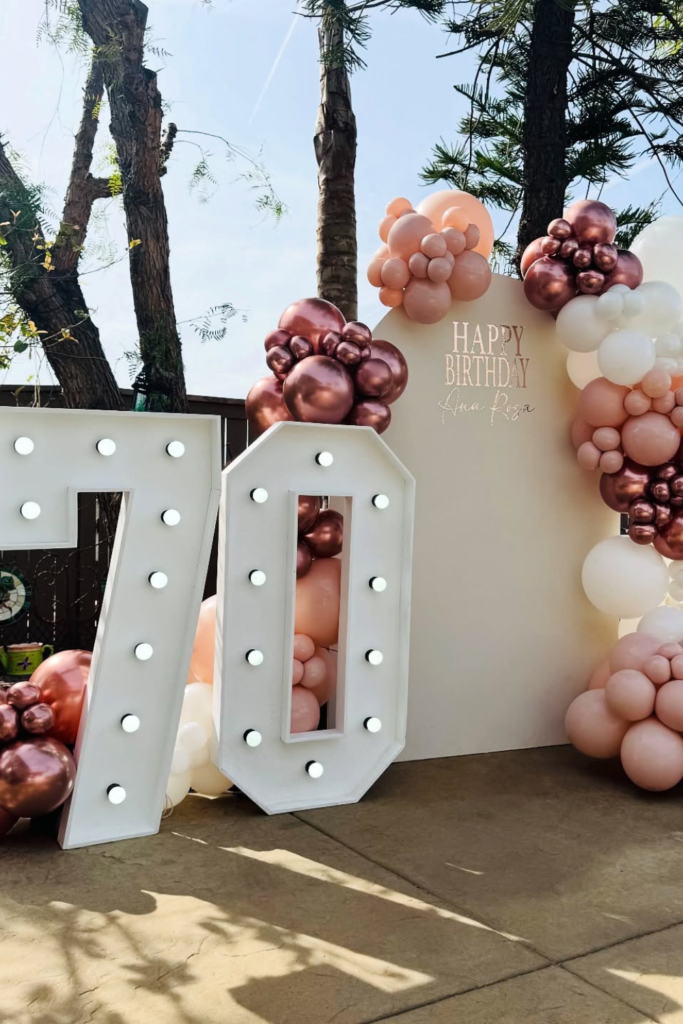 Frame it with balloons in deeper tones for contrast. Place light-up numbers nearby to keep the milestone clear.