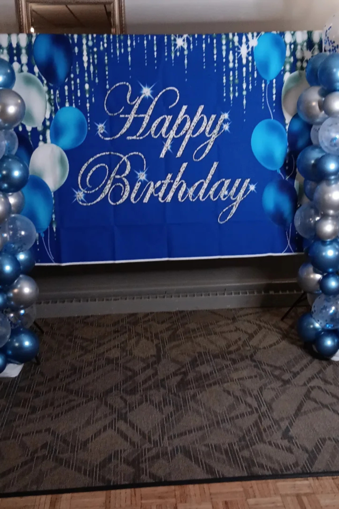 You want a clean focal point. Use deep blue with silver and white balloons to keep it rich but not overwhelming.