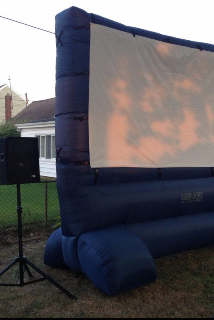 It functions best in open yards. Stake the inflatable screen down on all sides and set it early to allow it to firm up completely.