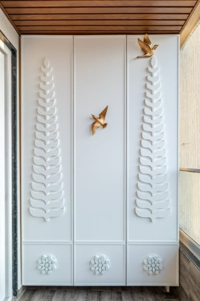 Protect items from moisture. Natural daylight highlights the wood finish, so storage feels like part of the design instead of an afterthought.