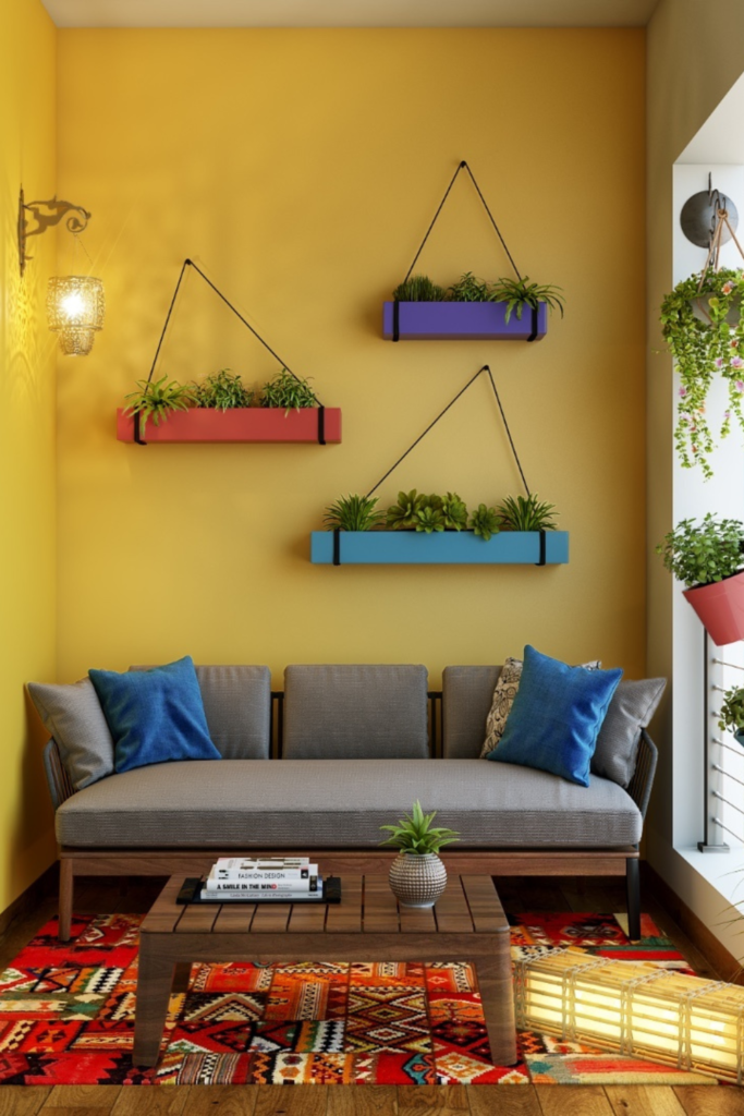 Hanging planter boxes like these keep greenery off the ground and free up room for seating or storage furniture below.