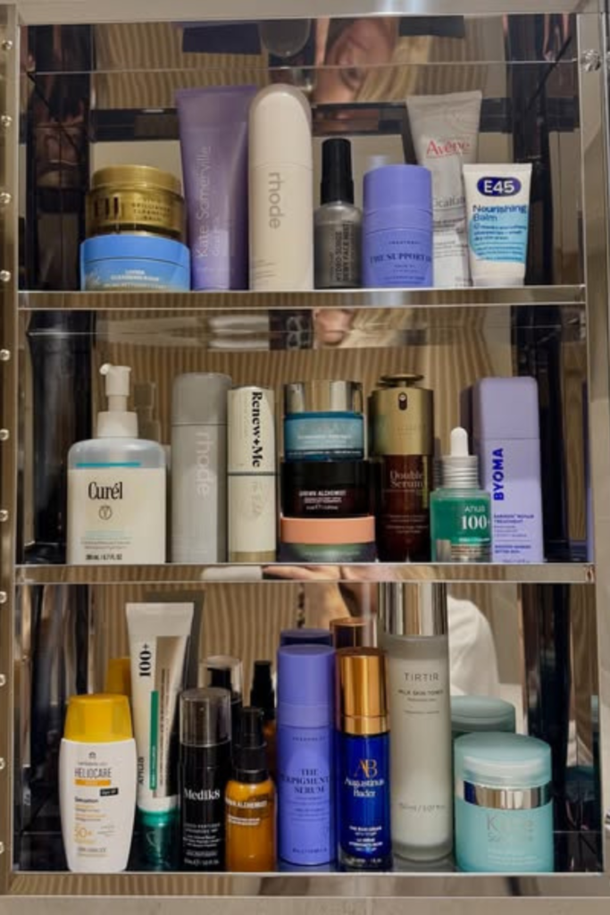 Skincare steps work best stacked from cleanser to treatment to moisturizer, shelf by shelf. Assigning one purpose.