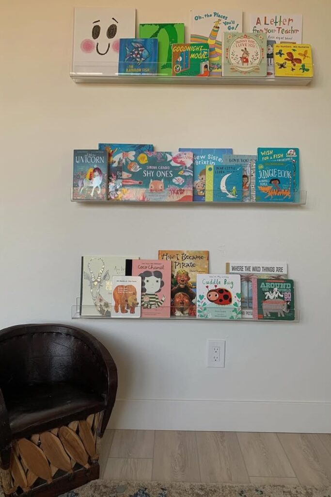 This kind of display is great for nurseries, playrooms, or a child’s bedroom because it makes the books look more welcoming.