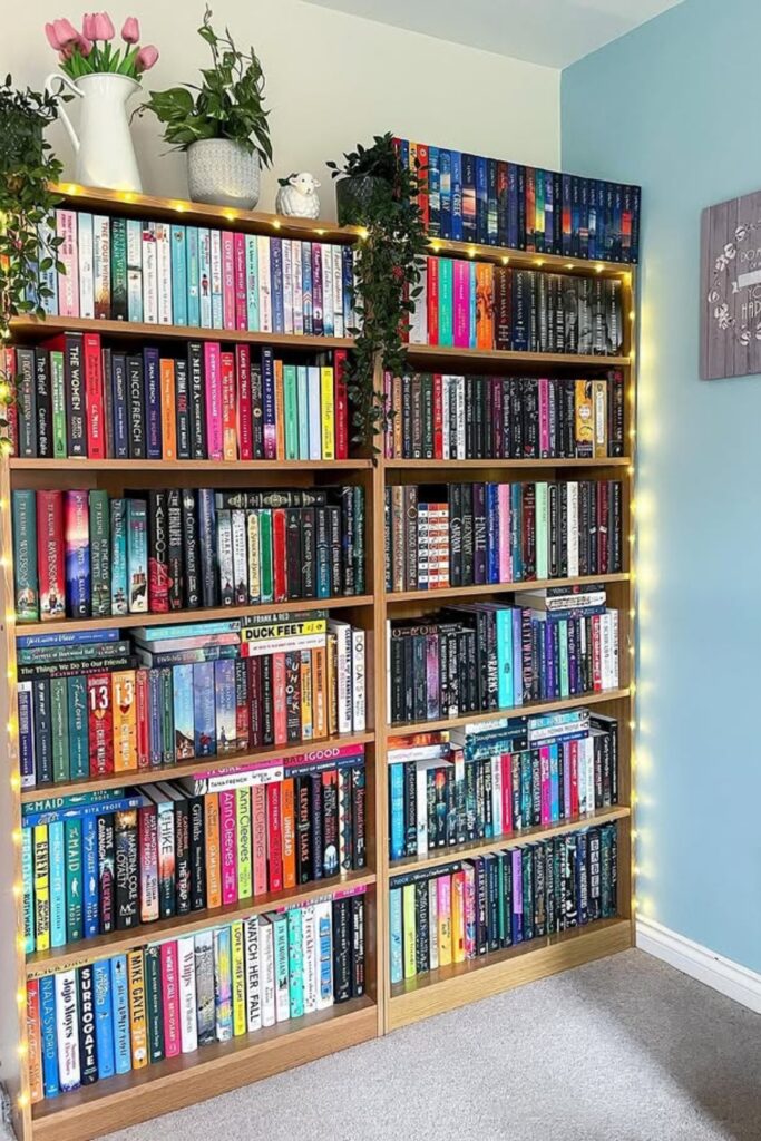 - 1.5 Brighten Bookshelves with Fairy Lights and Greenery