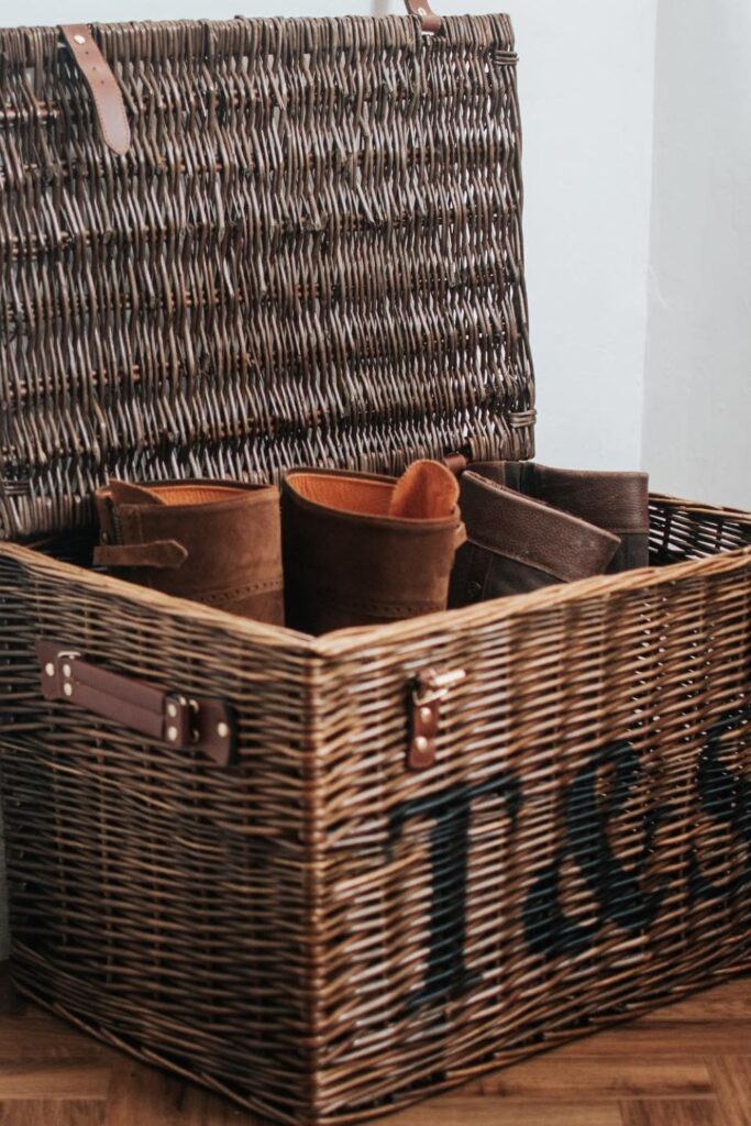 Putting a strong basket near the door makes it easier to get into the house boots go right inside instead of piling up around the door.