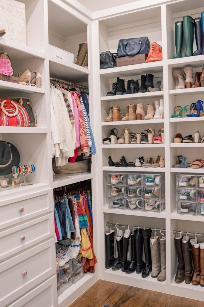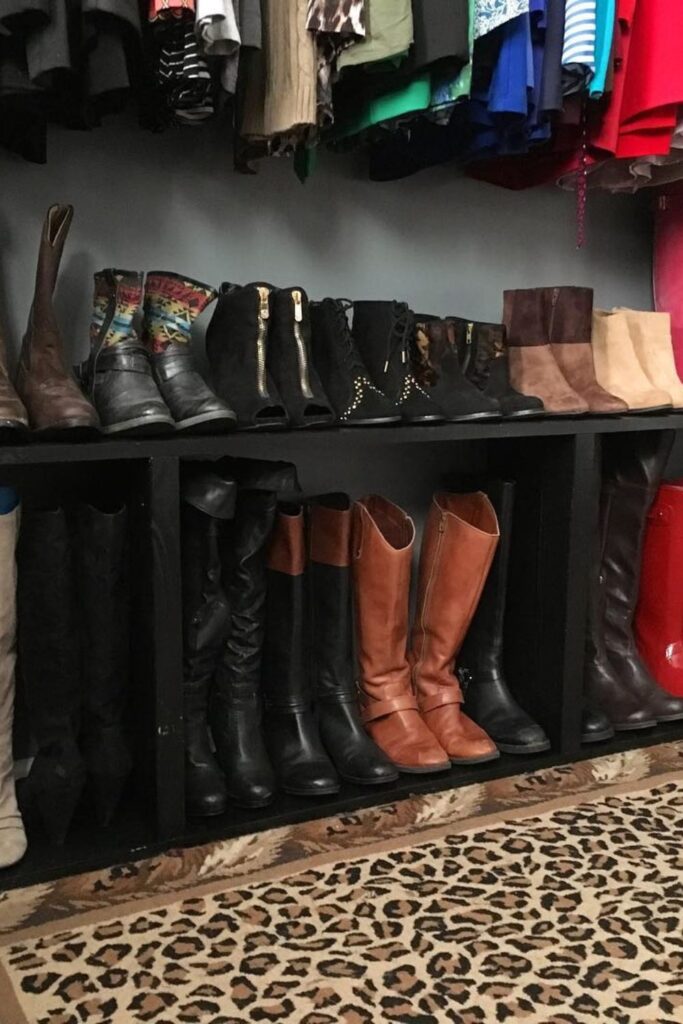 A closet becomes far more practical once tall boots get their own dedicated section instead of competing with regular shoes.