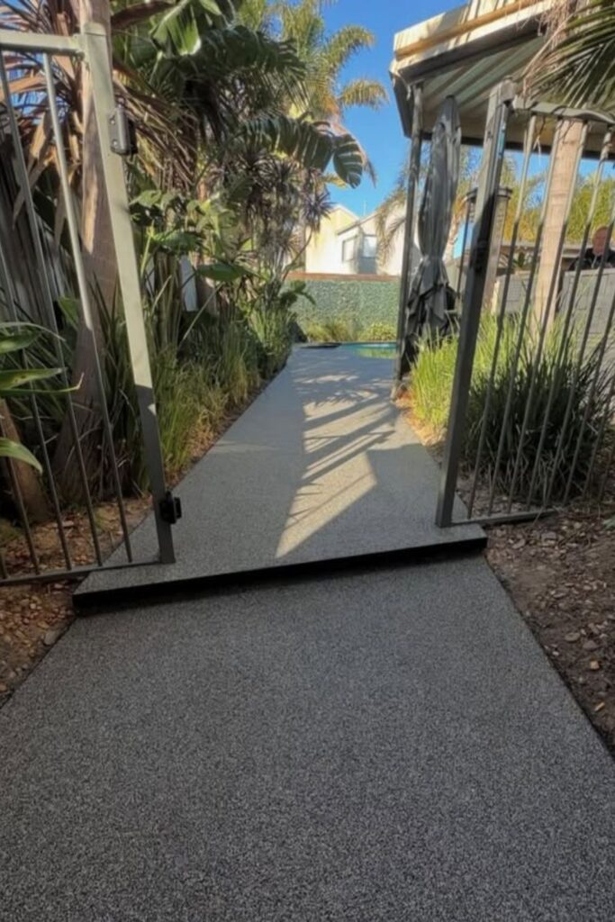 Achieve a contemporary look with a resin-bound surface embedded with pebbles.