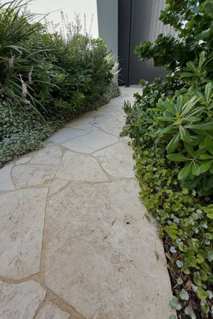 Add raised stone borders or integrated lighting for extra sophistication, making this walkway elegant without the high price tag.