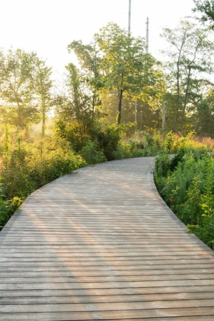 The smooth lines of this boardwalk blend beautifully with wild greenery for a peaceful, flowing vibe.