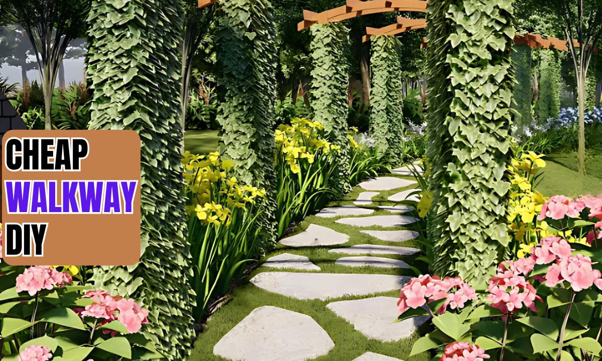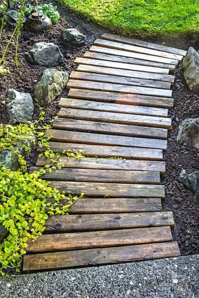 Weathered wood tones bring warmth and character, making this an easy and affordable DIY project for cozy garden paths.