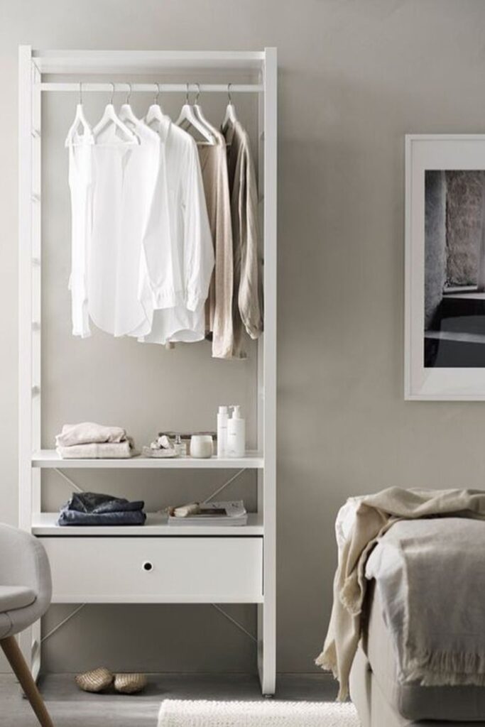 The ideas below will help you keep your clothes tidy without making your room feel too small.