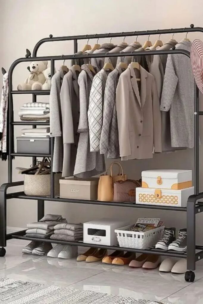 If you put things up the proper way, a small room without a closet can nevertheless hold a lot of clothes.