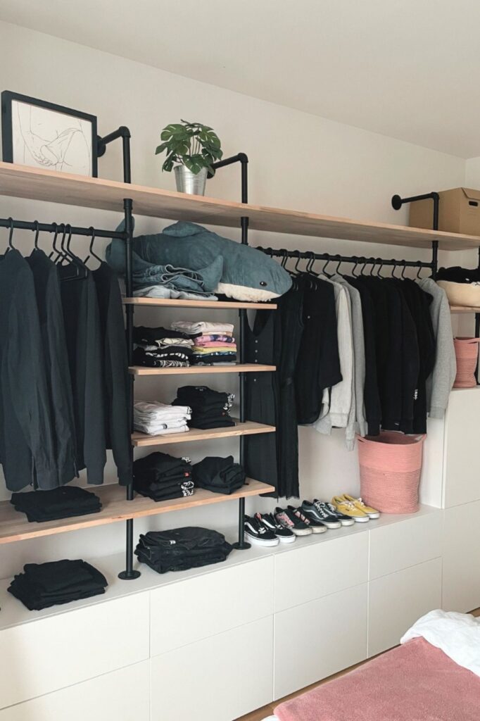 Empty walls can hold far more clothes than most closets when you build upward instead of outward.