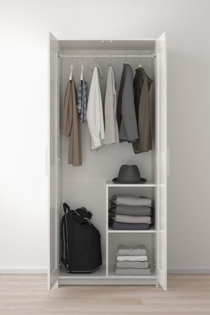 Tight rooms don’t leave space for wide storage, but a tall narrow wardrobe can still handle everyday clothing.