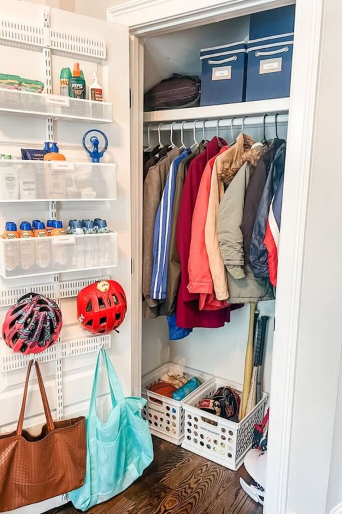 Making a small closet into a useful storage space is a good idea for jackets, coats, and other things you use every day.