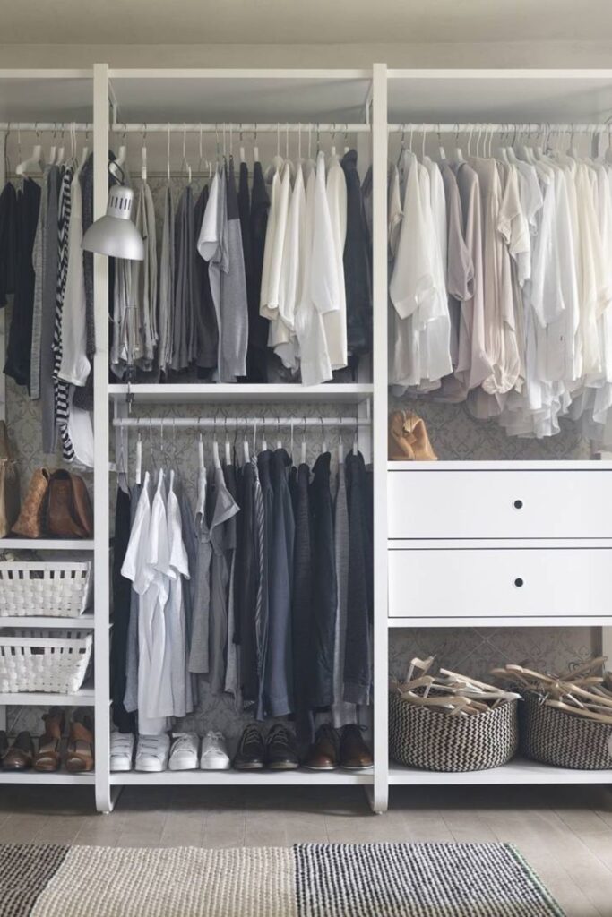 This setup is best for rooms with limited drawer space since it moves folded garments out of drawers and makes room for smaller objects.