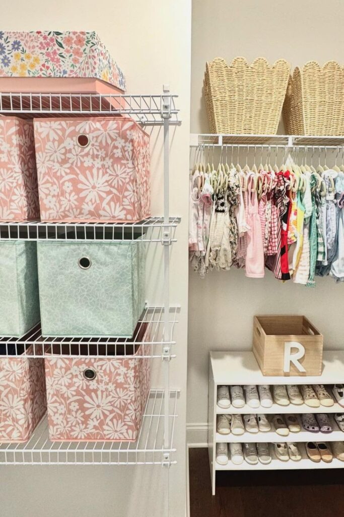 This works best in closets with open wire shelves because the boxes stay in place without slipping through gaps.
