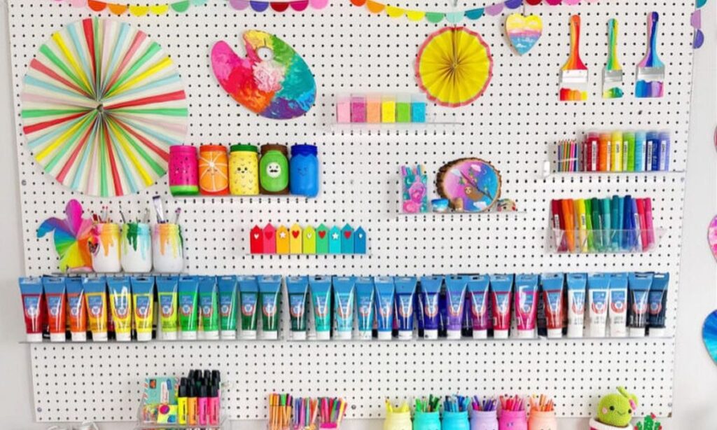 Keep tools and supplies visible and within reach with a large pegboard wall.