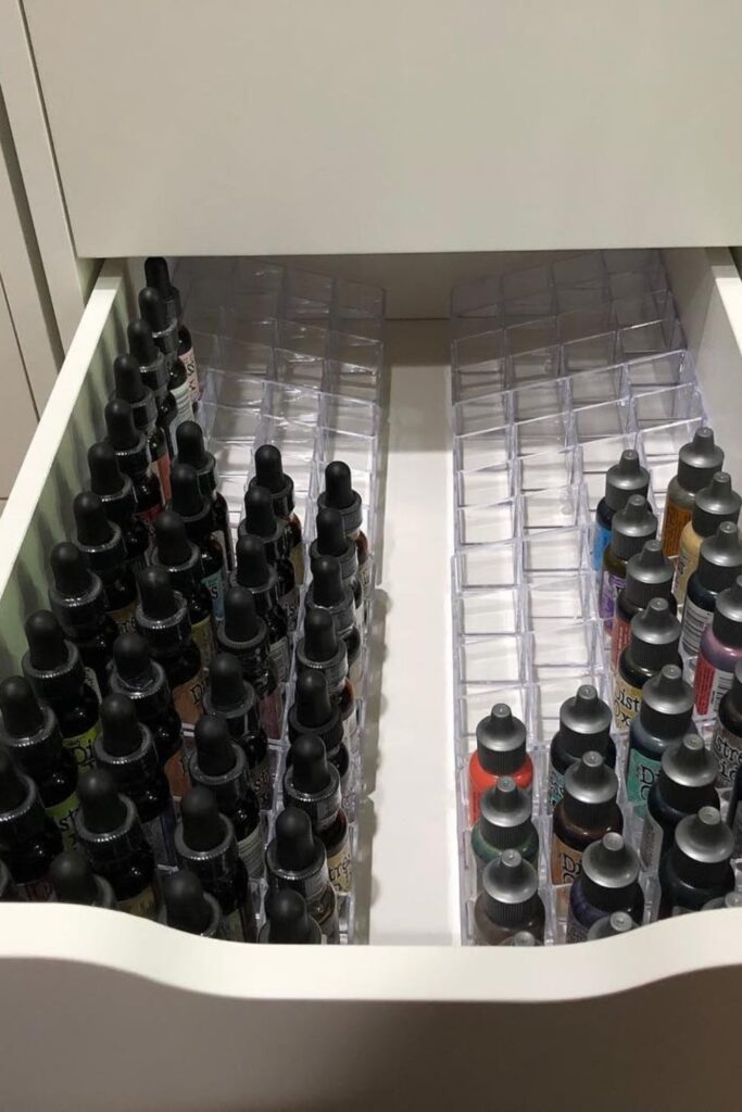 Ideal for alcohol inks and reinkers, this tidy solution maintains order without compromising drawer space, ensuring the creative tools are always within reach.