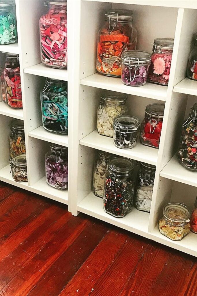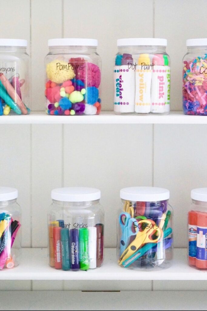 Perfect for organizing gel crayons, pompoms, confetti, and more, these jars make crafting supplies easy to see and grab.