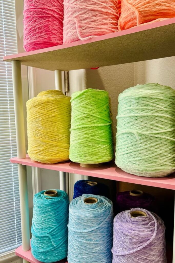 Create a colorful haven for fiber arts with a yarn shelf display.