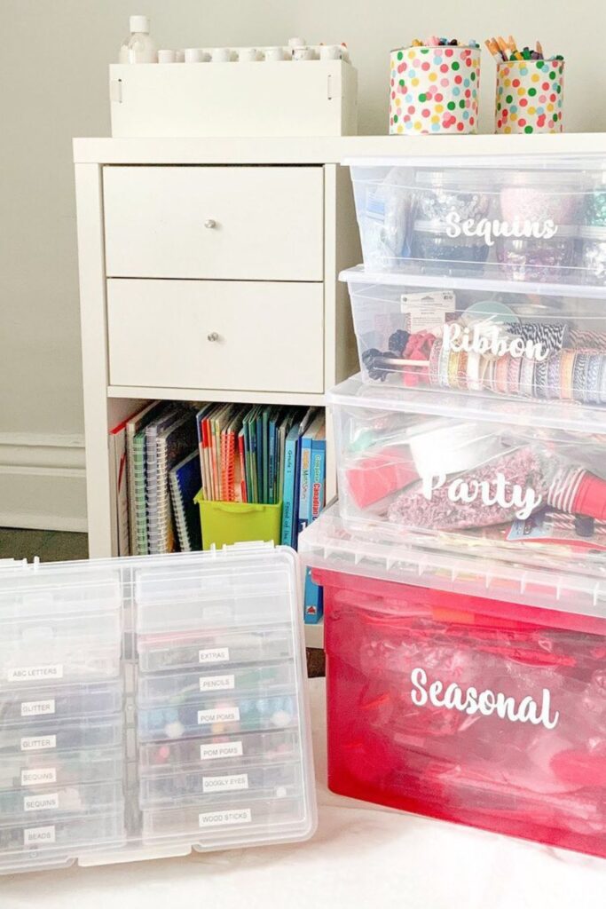Divide materials like sequins, ribbon, and seasonal items into easy-to-identify categories.