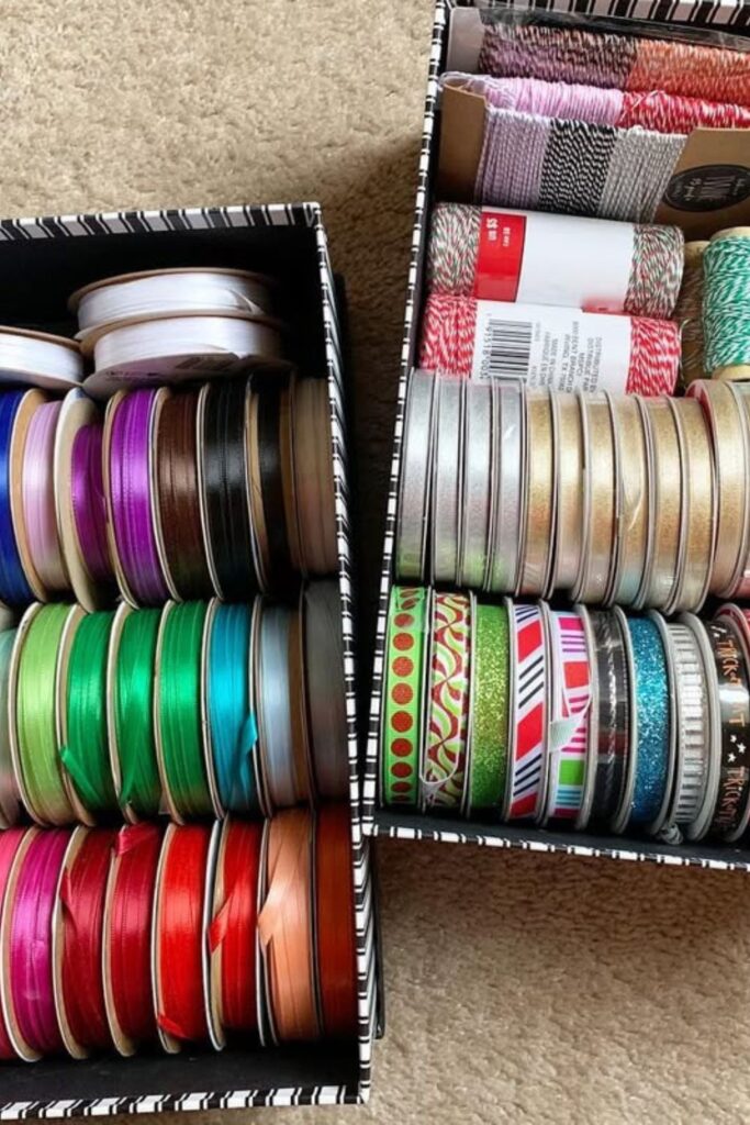 Organize embellishments like ribbons, buttons, and trinkets by color for easy access and a visually striking display.