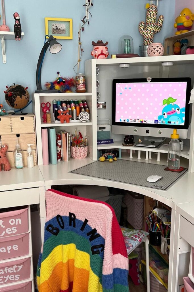 This setup is perfect for crafters who thrive on colorful, inspiring spaces.