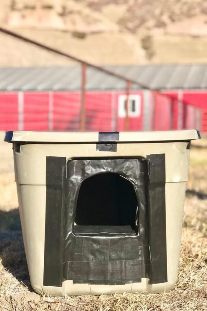 Cold nights demand a straightforward solution that retains heat. Plastic storage bins outperform cardboard in this regard, plus they won’t buckle under the weight of rain.