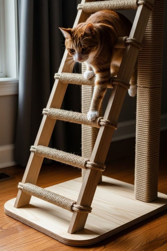 Some cats appear to prefer climbing to jumping. A ladder setup works well for senior cats or those who aren’t as spry and prefer a gentler ascent.