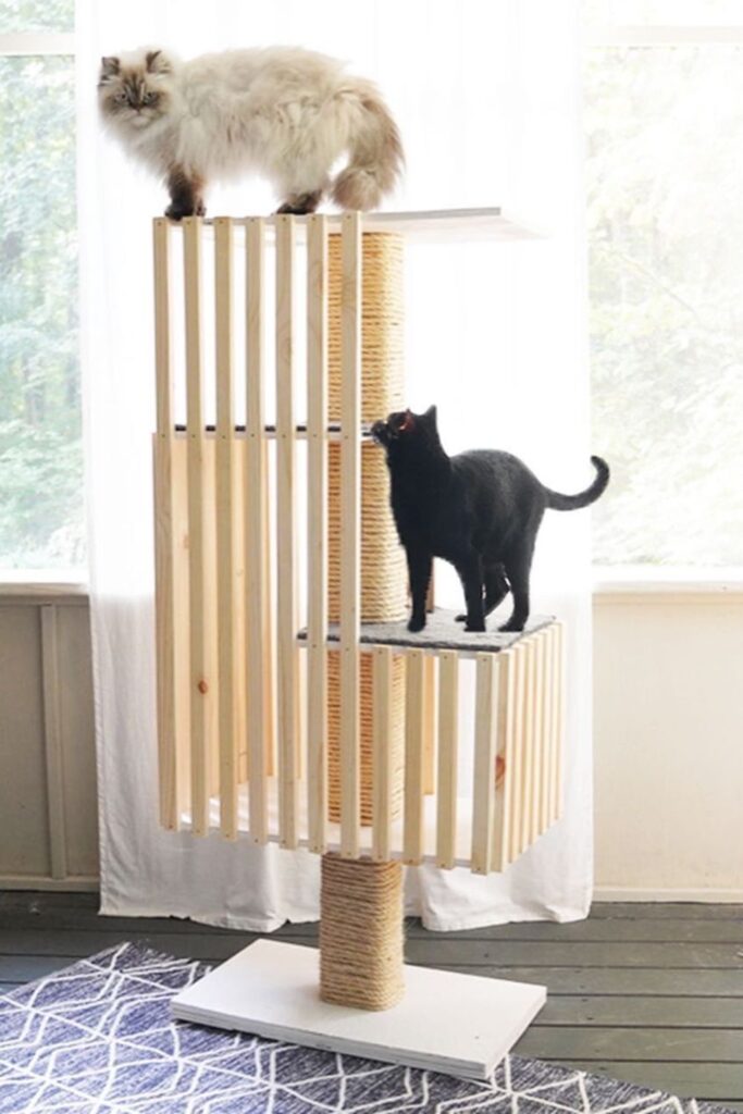 Clean lines can still work hard for your cat. A vertical column like this fits best in homes where the design matters just as much as function.
