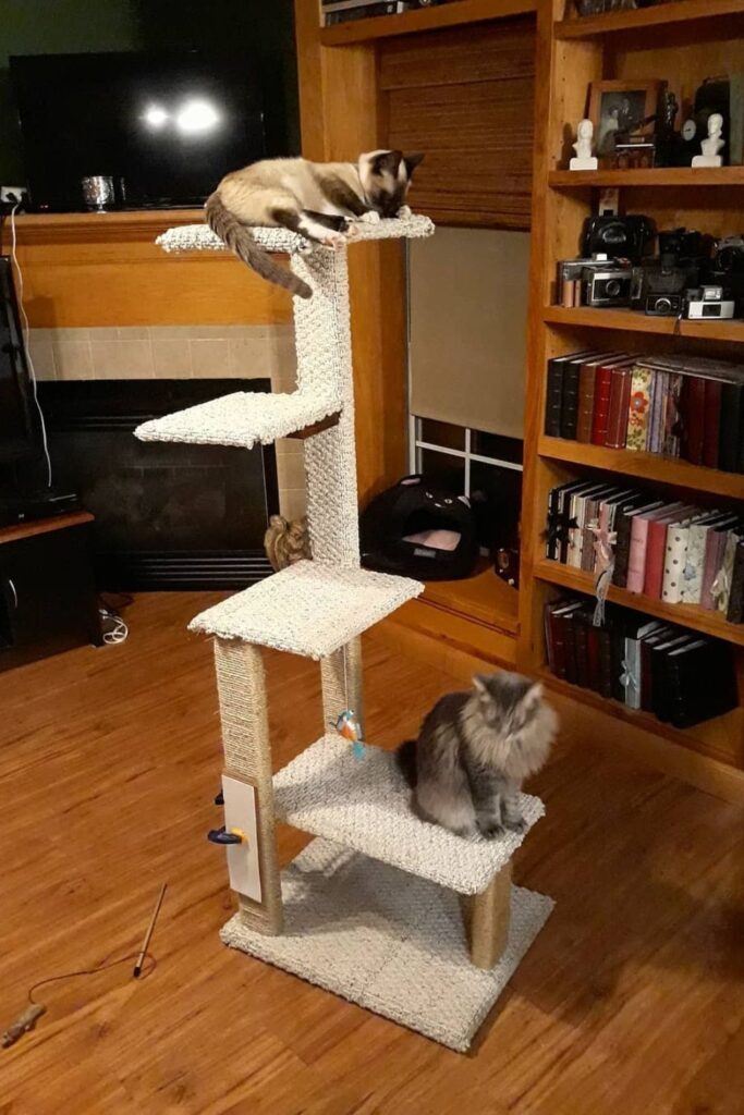 Taller isn’t always the way to go. Most cats seem to prefer a tower that stands somewhere between four and six feet, provided they can ascend gradually.