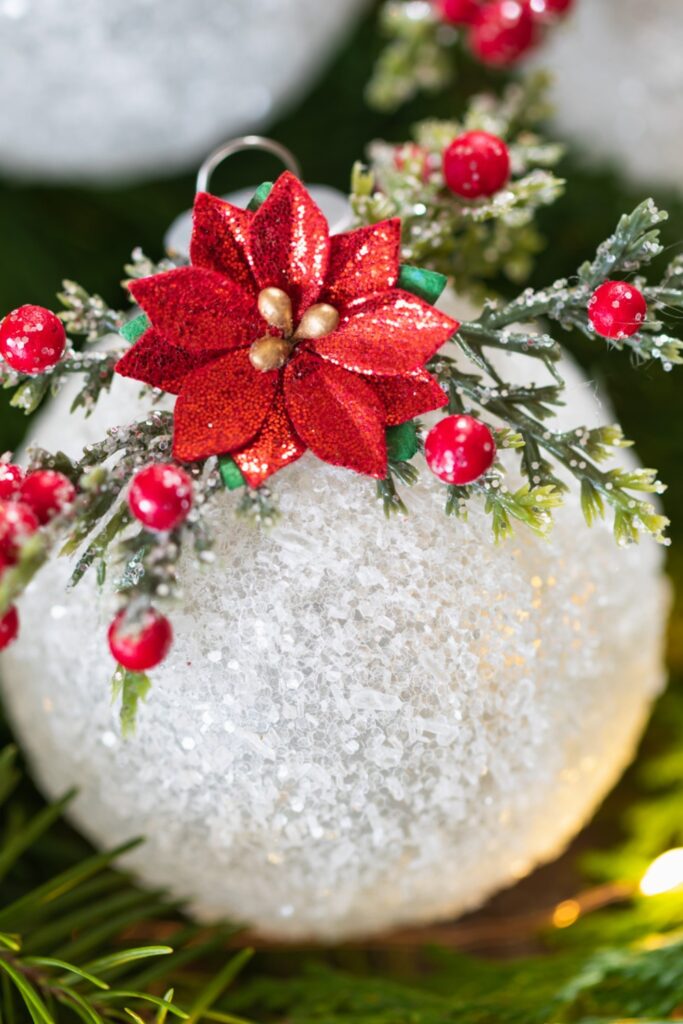 Including DIY-painted ones, plastic, and shiny glass. They go well with any theme, so you’ll frequently see them in sets of red, gold, silver, or white.