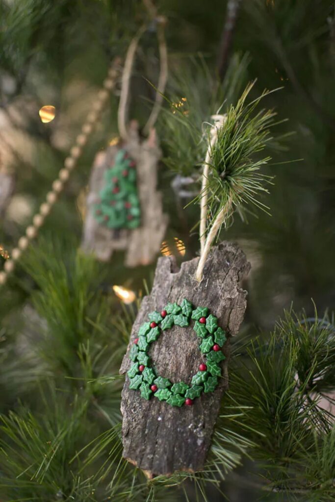 Your tree will have a genuine woodland charm thanks to these rustic bark ornaments. Use tiny bits of bark as the foundation.