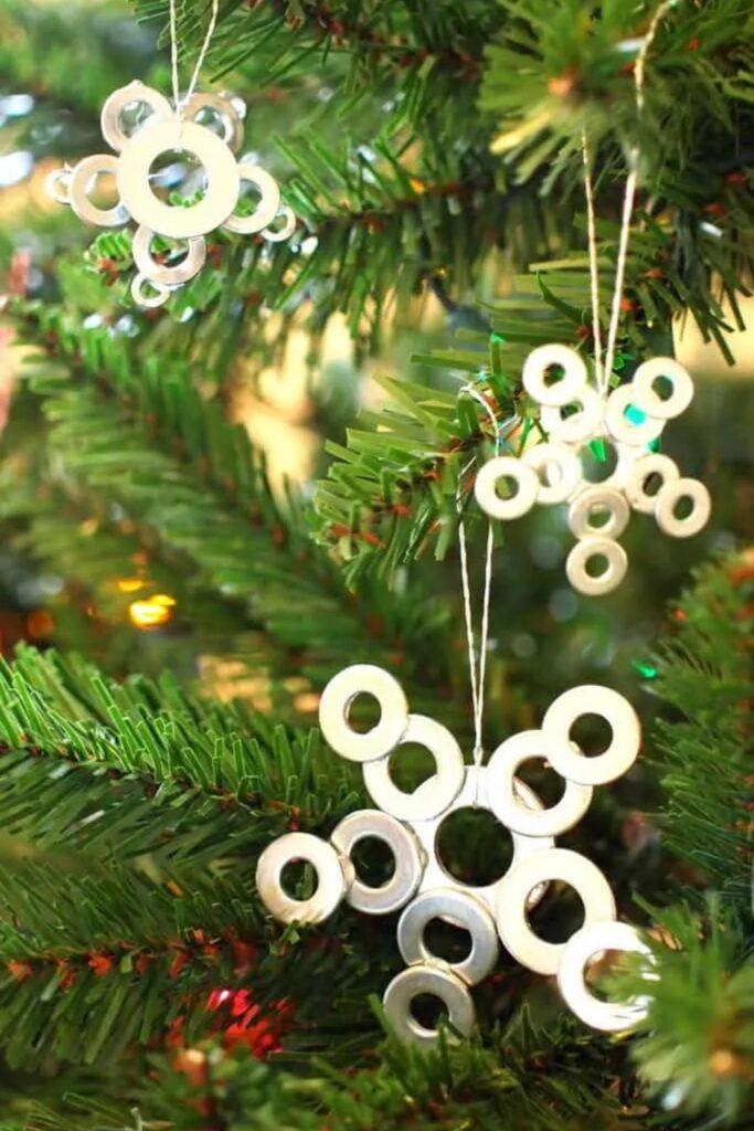 Hang them with twine. They create a serene winter atmosphere for your tree by standing out attractively in cold white or blue lights.