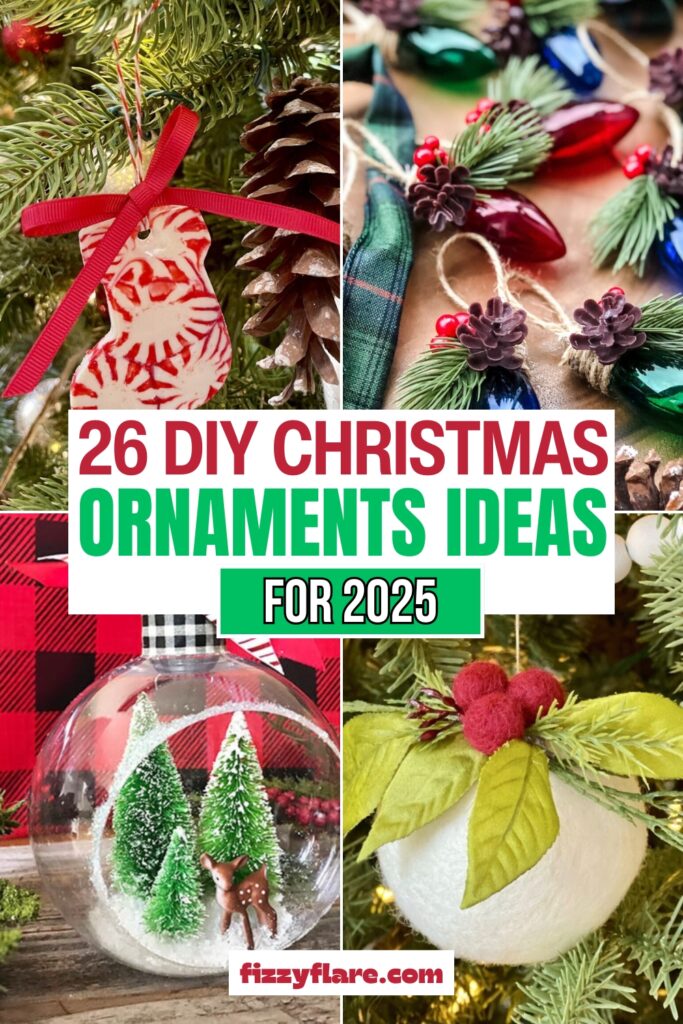 Use air-dry clay, leftover fabric, paper, or clear plastic ornaments. Natural elements like dried oranges, pinecones.