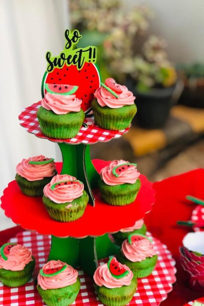 The vibrant colors help the cupcakes stand out, and the gingham pattern connects everything to the picnic theme.