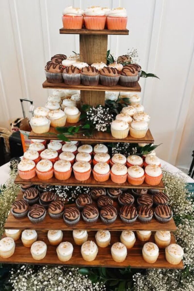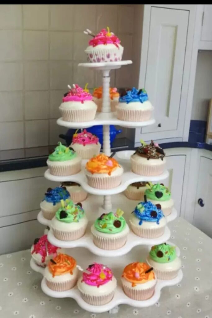 Acrylic tiers or hardwood rounds are the finest options if you’re looking for a reusable solution. The stand will support your cupcakes firmly as long as the base is balanced and wide.