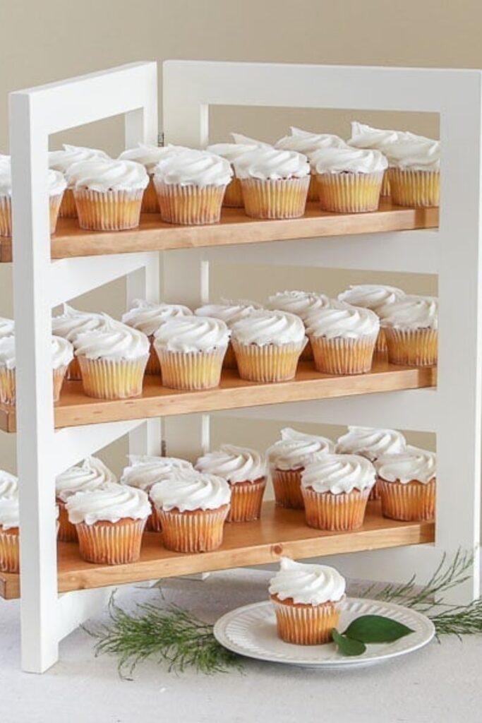 This tiered wooden stand instantly adds height and charm to your cupcakes if you want them to stand out on a table.