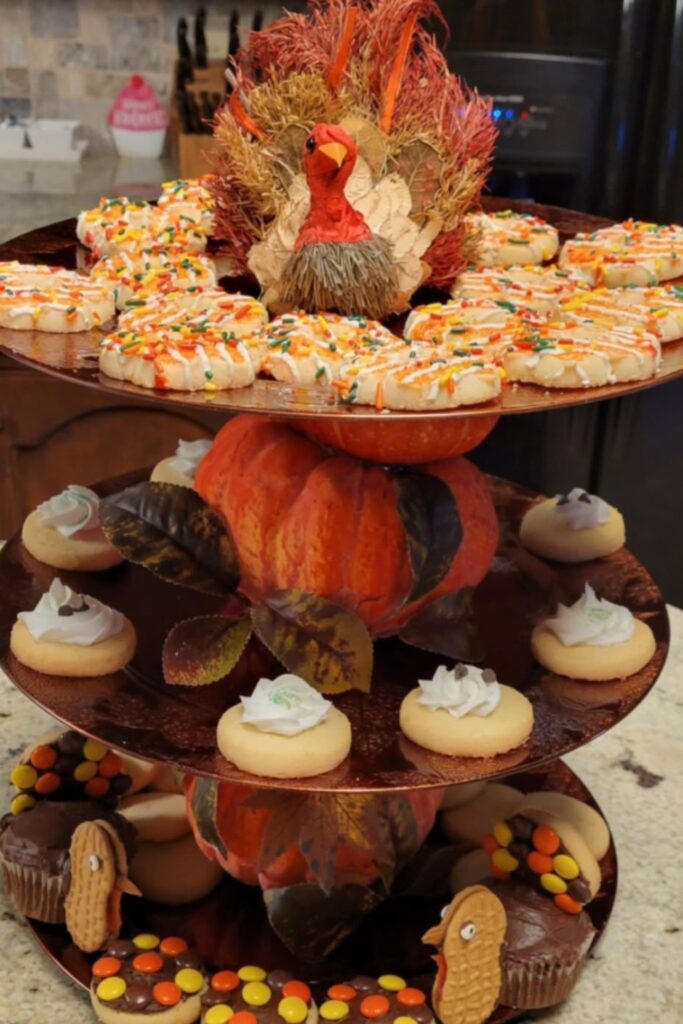 By stacking spherical trays and using a fake pumpkin as the center support, you may replicate it. Quickly bring the motif together.