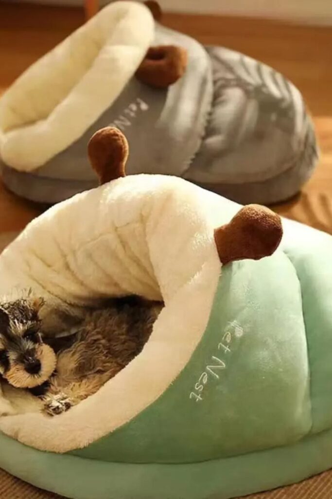 Some dogs don’t just sleep they burrow. A cave-style bed works best for small dogs that love warmth and hiding.