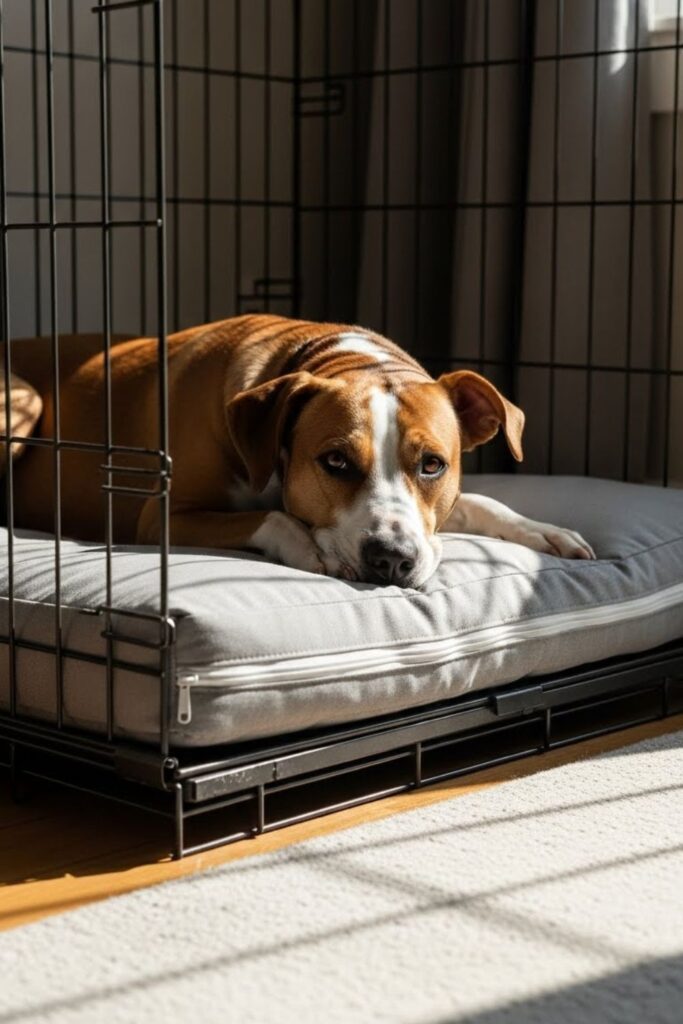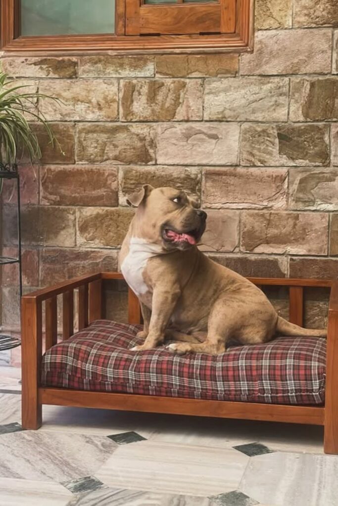 Raised sides and a solid base make sense when a heavier dog needs real support. This setup works well indoors or on covered patios where airflow and structure matter.