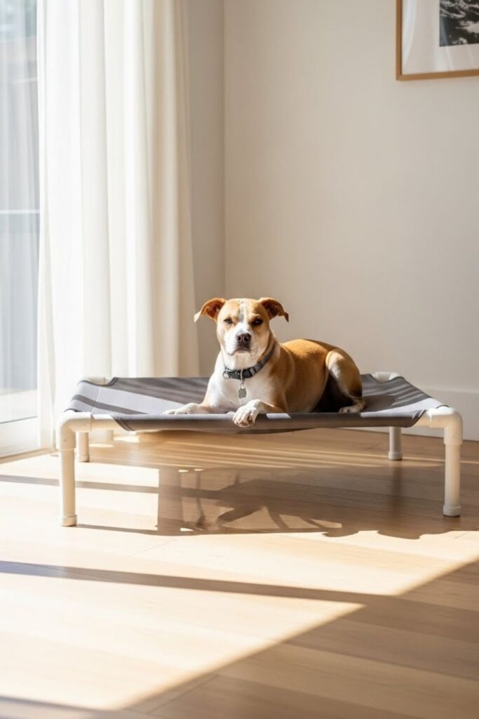 Breathable fabrics and higher beds might help with airflow if your dog gets too hot.