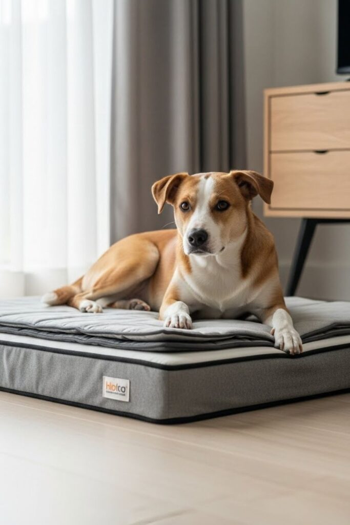 Some dogs don’t want walls or fluff around them they just want a solid place to lie down. A flat, mattress-style bed works best for dogs that sprawl or change positions often.