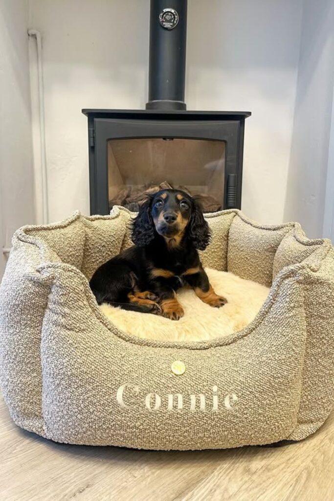 Many dogs look for warmth when the floors are cold, and putting a deep-sided bed near a stove or heater fixes that quickly.