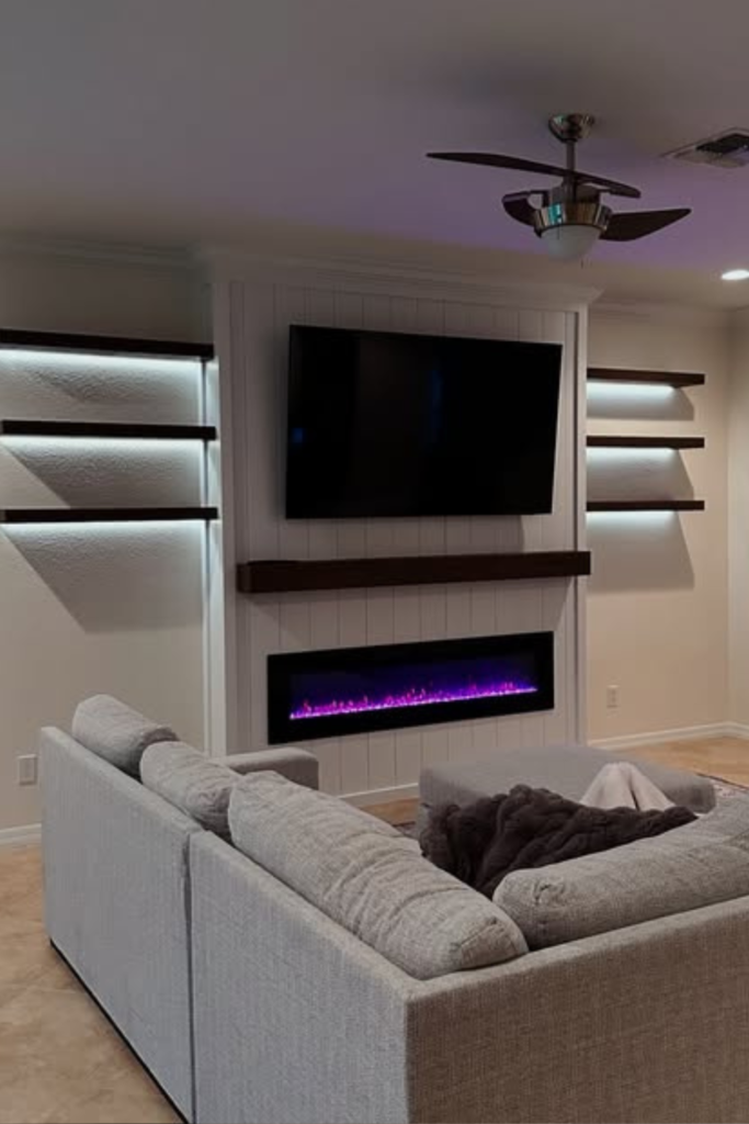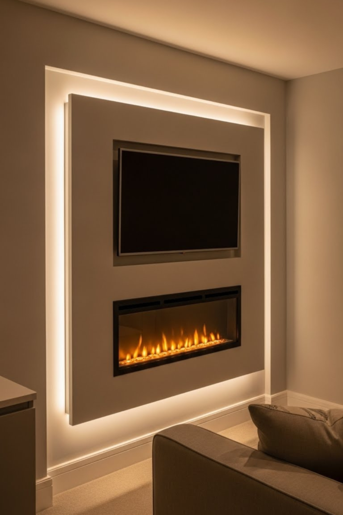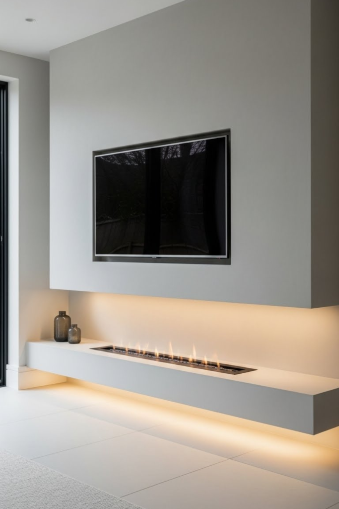Adds depth for a contemporary, architectural effect. Make the TV and fireplace feel integrated rather than detached.