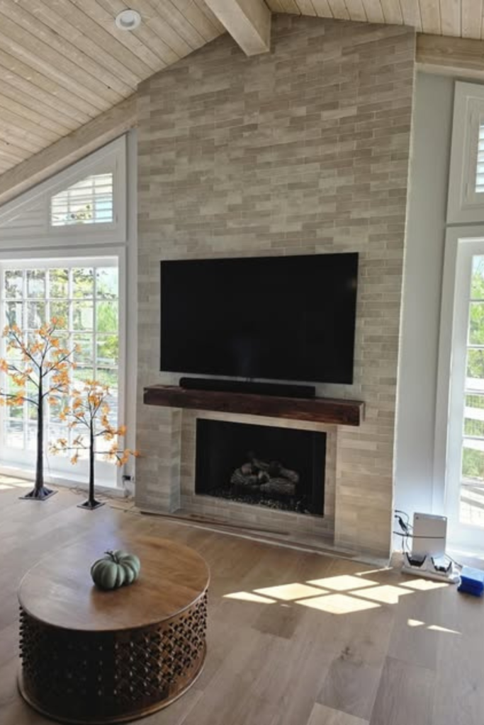 Putting the TV too high, or spending money on something that ends up looking bad, but you still want that tidy fireplace-and-TV combination.