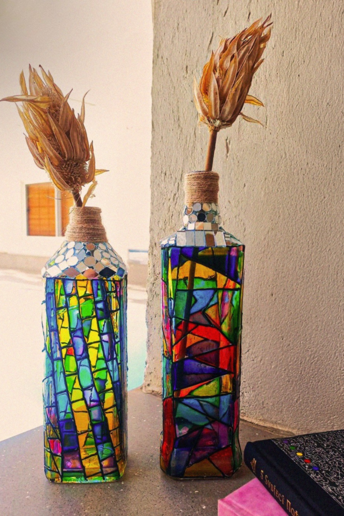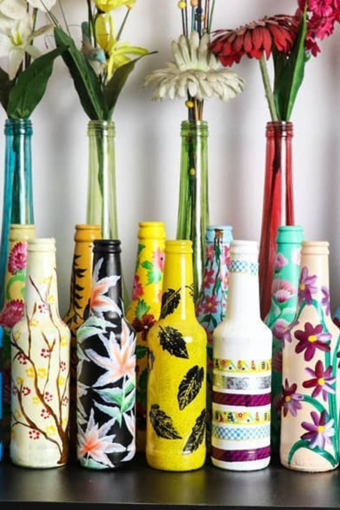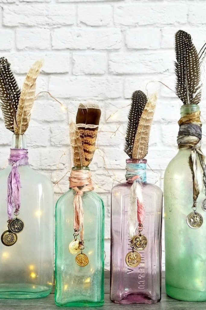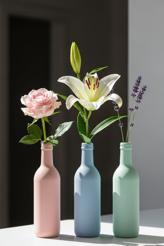 You can create vases, painted décor bottles, or light bottles with fairy lights if you want quick results without equipment.