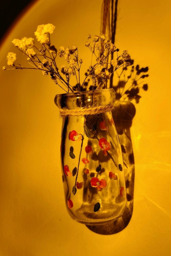 Hanging a bottle vase immediately overcomes the problem of having a limited surface area. Place the bottle.